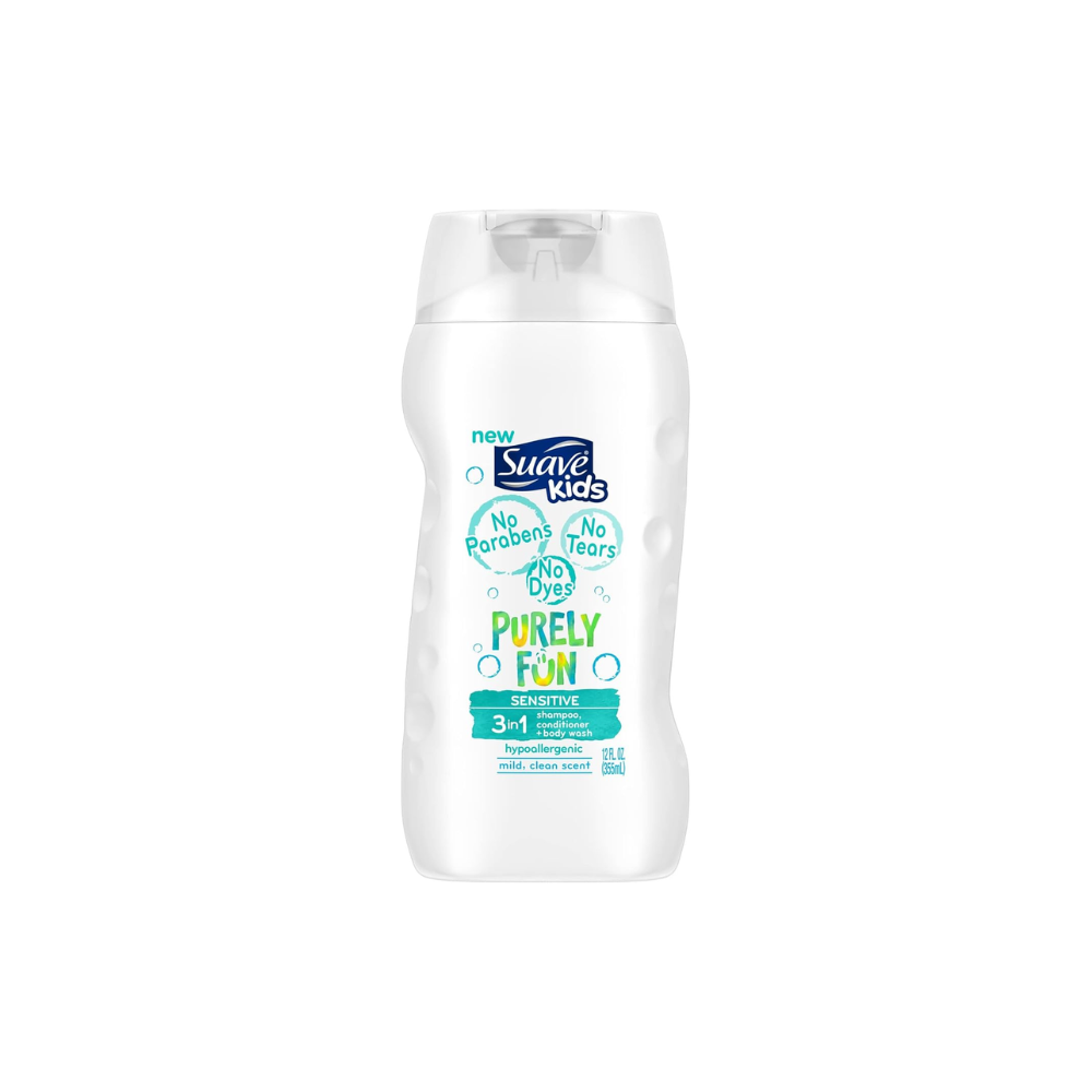 Suave Kids 3 in 1 Shampoo Conditioner Body Wash, Purely Fun Sensitive, 12 oz