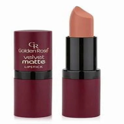 - Golden Rose Velvet Matte Lipstick creates matte velvety finish on the lips with its high pigmented and long wearing formula. Smoothly glides, nourishes and hydrates your lips thanks to moisturizing agent and Vitamin E in the formula. From pure red to nude, it is available in 39 rich shade alternatives.The formulation is paraben free and dermatologically tested.