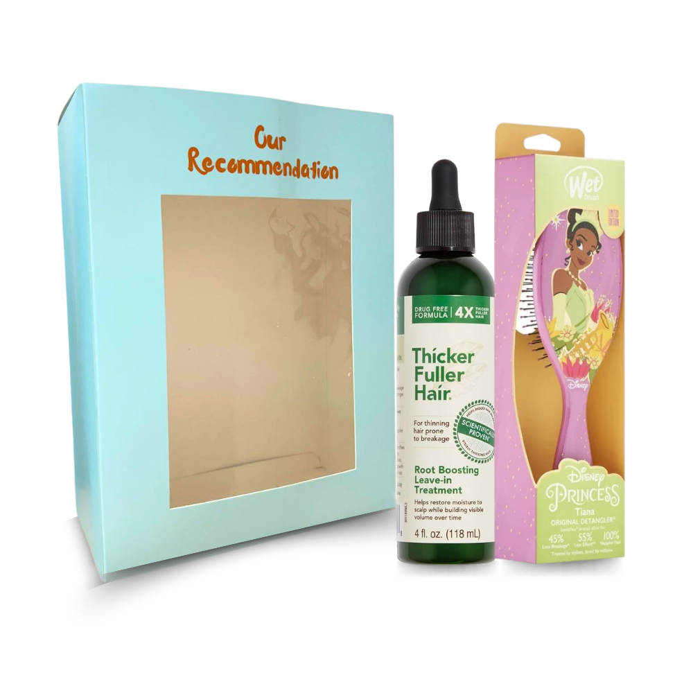 This bundle combines a leave-in hair treatment with a hair brush designed to gently detangle and style without breakage — perfect for everyday use on all hair types.