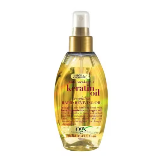 OGX Anti-Breakage + Keratin Oil Weightless Rapid Reviving Oil 118ml focuses on fortifying the hair from the inside in order to improve the resilience and overall health of your strands. In fact, this product was specially developed to help you deal with not only daily styling damages but also environmental aggressors. It does so by harnessing the properties of Keratin – a type of protein naturally found in the body that helps to maintain the health and structure of the hair and skin. Rich in amino acids, this ingredient helps to improve manageability and smoothness while addressing damage. In other words, the Anti-Breakage + Keratin Rapid Reviving Oil proves to be efficient in reinforcing the hair fiber and, like so, in preventing split ends and breakage.